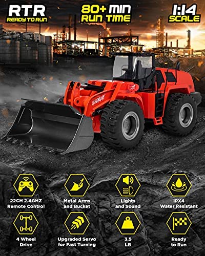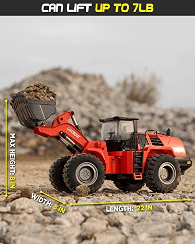 1:14 Scale 22 Channel Full Functional Remote Control Front Loader Construction Tractor, Full Metal Bulldozer Toy – Can Dig up to 3.5Lbs