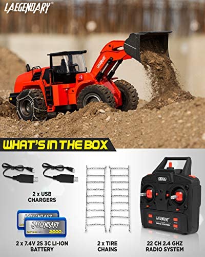 Prepared for Adventures – The heavy obligation Entrance Loader is able to run out of the field. It has an in depth inside, working headlights/taillights, and controls for digging and dumping dust and different payload. It contains two 2S 2000 mAh Li-Ion batteries, two USB chargers and two steel anti-slip tire chains