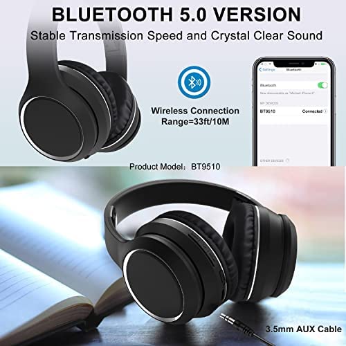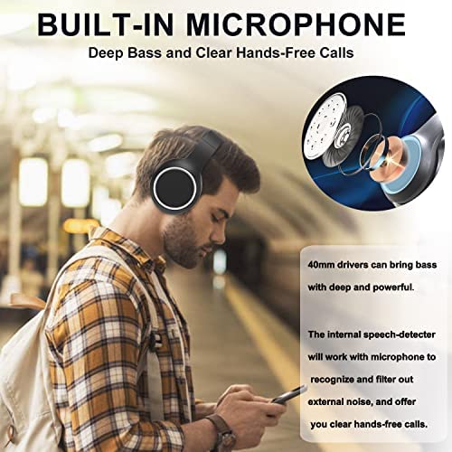 ☊【Bluetooth 5.0 & Deep Bass】Bluetooth 5.0 technology offers more stable transmission speed, lower latency and better audio output. 40mm drivers can bring bass with deep and powerful, and reproduce music with rich details and clarity. Built-in microphone, the bluetooth headphones will recognize and filter out external noise offering clear hands-free calls.