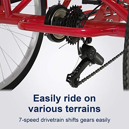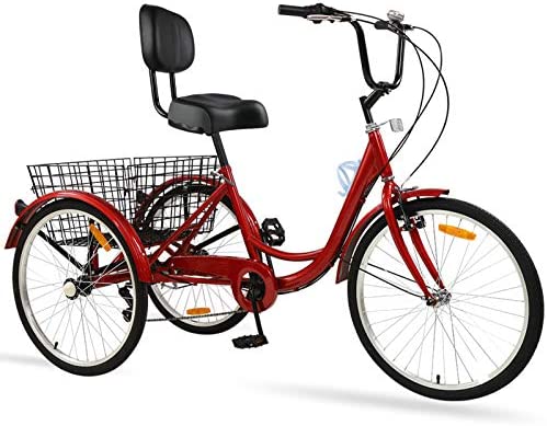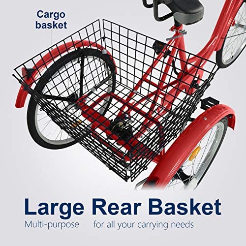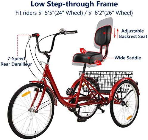 Adult Tricycles 7 Speed 26 Inch Three Wheel Bike Cruiser Tricycle Featuring Low-Step Through Frame/Large Basket/Backrest Saddle for Men Women Seniors (Wine, 26" Wheel / 7-Speed)