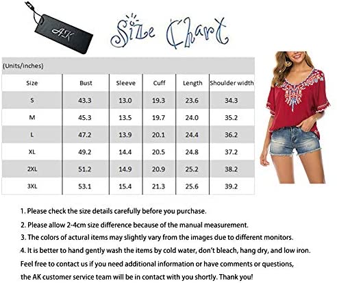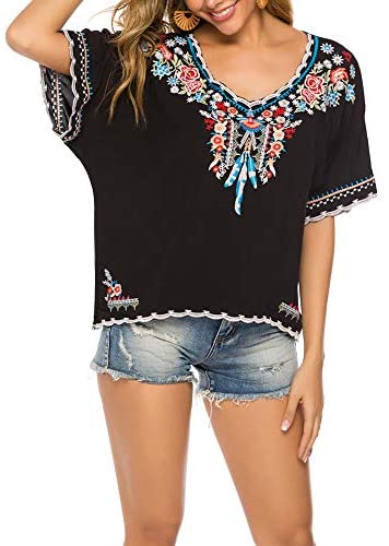 AK Women’s Summer Boho Embroidery Mexican Bohemian Tops Shirt Tunic Blouses