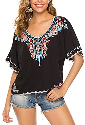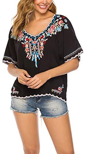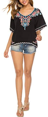 This boho look mexican shirt with lovely embroidered course of,brilliant shade,cloth is gentle and smooth,good to the touch good.Match quick denims or leggings are each good.Tops is the appropriate size for informal.