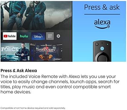Press & Ask Alexa: Use the included Alexa Voice Remote to manage TV power, volume, navigation, playback, and input switching. Or just press the microphone button and say, “Find dramas,” and Alexa will show you search results from a central catalog of hundreds of integrated apps and channels.
