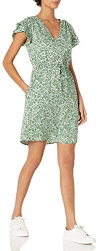 Una marca de Amazon – Femenino y divertido, este mini vestido tiene volantes mangas, corbata ajustable en la cintura y bolsillos. Es lo suficientemente versátil para el fin de semana, vacaciones o cualquier día de la semana.