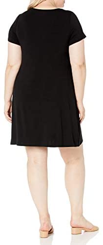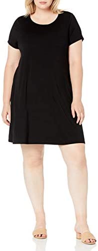 An Amazon model – This versatile short-sleeve swing costume encompasses a scoop-neckline and a female drape for straightforward, on a regular basis styling