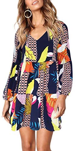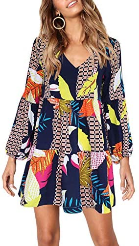 This mini tunic costume with comfortable material, mild weight and breathable, make you benefit from the breezy fashion.Horny deep v neckline, lantern sleeve, ruffle match and flare fashion, strong coloration, flowy and swing tunic size, unfastened match, shift backside, might be excellent in your wardrobe as a cushty every-day costume.This informal v neck costume might be simply costume up and costume down. Good for you attending an marriage ceremony, occasion, membership, procuring ,courting, or put on it to work, workplace, enterprise, even journey, trip, seaside, faculty and leisure locations. Lengthy sleeve tunic costume with comfortable mild materials, you’ll be able to put on it in summer season warmth, or pair it with leggings, tights, boots for a spring, autumn stylish look, even layer with jacket, lengthy cardigan and sweaters, tremendous comfy but in addition avenue fashion.