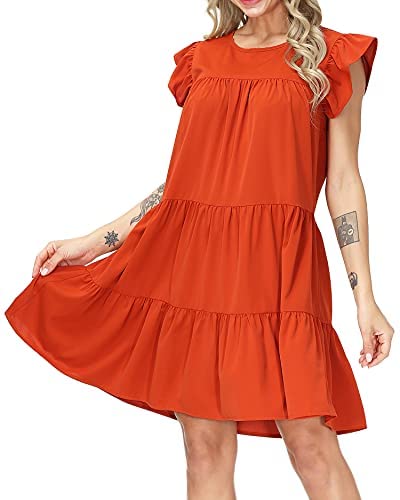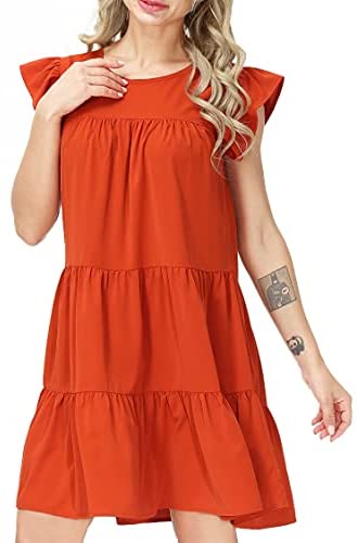 Anatoky Girls Summer season Ruffle Clothes O Neck Informal Unfastened Flowy Swing Shift Costume