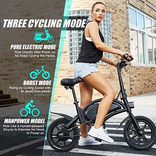 FASHION DESIGN & GOOD QUALITY: Our ebike inspired by the shape of dolphins, has super cute and smart design. IPX5 Waterproof range protects your trip on rainy days. It also adopts innovative aluminum alloy frame, double layer aluminum alloy wheel.