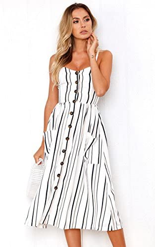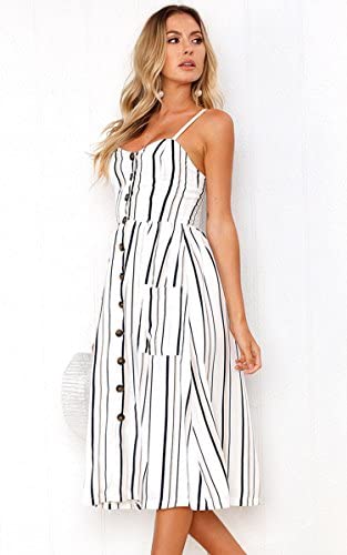 Angashion Girls’s Clothes-Summer season Floral Bohemian Adjustable Spaghetti Strap Button Down Swing Midi Gown with Pockets