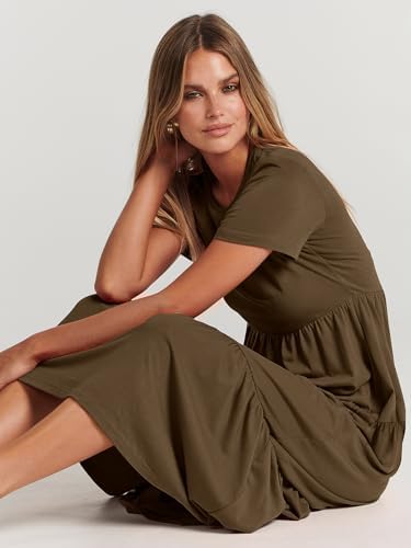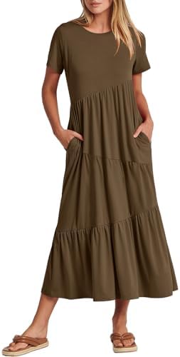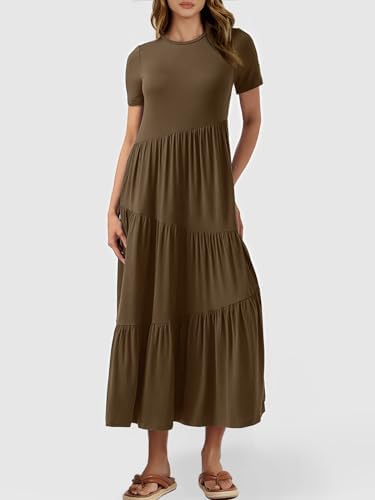 ANRABESS Women Summer Maxi Dress Short Sleeve Swing Casual Asymmetric Tiered Vacation Long Beach Sundress Outfits