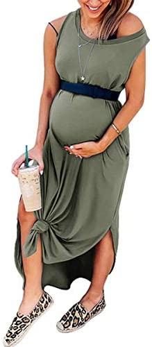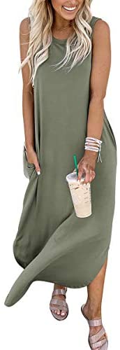 ANRABESS Ladies’s Informal Free Pocket Lengthy Costume Sleeveless Cut up Maxi Clothes