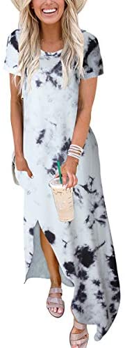 – Cozy t-shirt materials smooth and breathable- Handkerchief hem and the Excessive-cut facet slit- Informal Fashion with brief sleeve and crew neck- Stable and tie dye print shrot sleeves flowy free maxi dress- Good for each day informal put on,social gathering,journey and seashore cowl ups