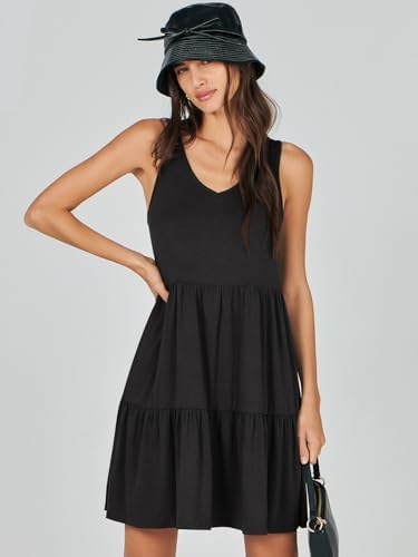 ANRABESS Women’s Sleeveless V-Neck Tiered Mini Dress with Pockets