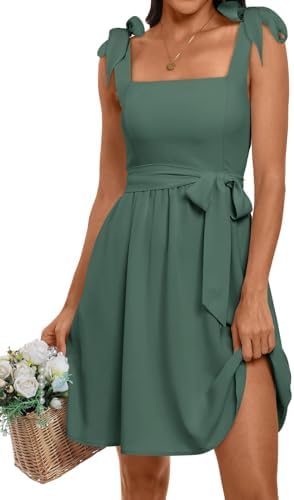 ANRABESS Womens Square Neck Tie Shoulder Sleeveless Summer Dress