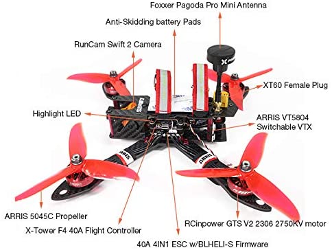 It comes with Flycolor X-Tower F4 Tower comes with BLHei-S 4-in-1 40A ESC and F4,PDB and OSD board, and it is extra handy to take care of.