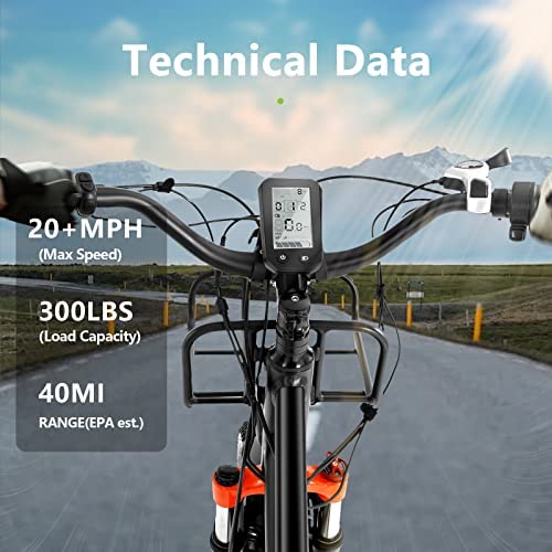 Enhanced Riding Experience: Equipped with a professional SHIMANO-7 shift gears system, our e bike for adults provides accurate and smooth shifting. The Lockable front suspension fork and dual mechanical braking system increase shock absorption, making for a smooth and safe ride even on bumpy roads. 36V LED headlight and rear reflector (not tail light) ensure safe at night riding. An intelligent LCD display provides real-time information on riding speed and mileage