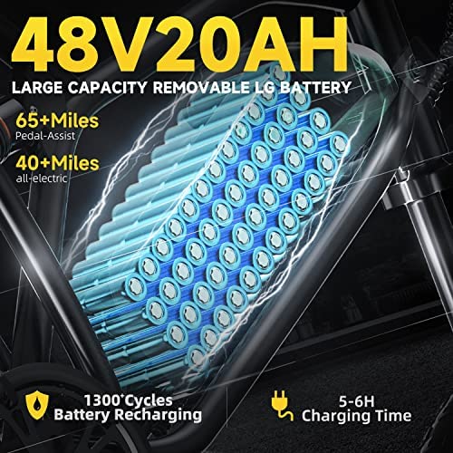 【960WH LARGER BATTERY CAPACITY】Equiped with a 48V 20Ah battery, the single range of S4 electric bike for adults can be up to 60+ miles per charge on pedal-assist mode and around 40 miles on pure electric power mode.