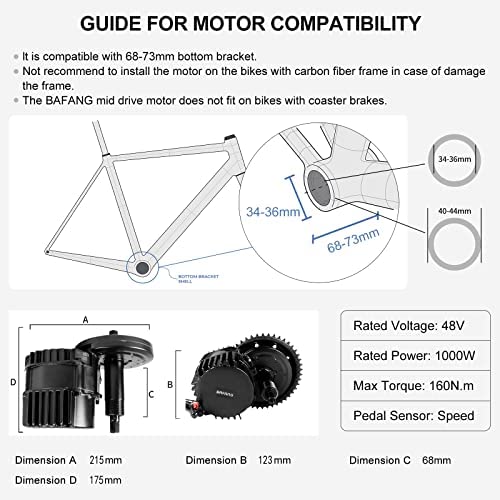 🚴[ POWERFUL MOTOR & CYCLING MODE ]🚴 With the max torque 160 Nm , the 1000W BAFANG electric bike conversion kit has excellent performance on climbing . Ride at the fastest speed with smallest effort , take it to exercise and have fun ! There are 3 cycling modes for the mid-drive motor : E-bike ( Throttle Mode ) , Pedal Assist Mode & Normal Bike . Various modes perfectly satisfy your different needs