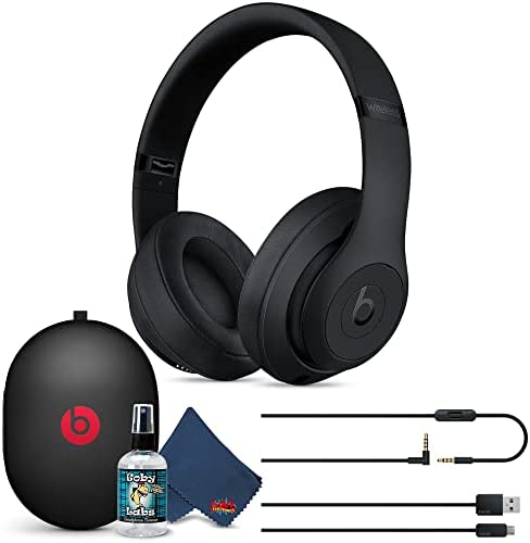 Bundle Includes: 1 x Beats Studio3 Wireless Headphones (Matte Black) | 1 x Carrying Case | 1 x 3.5mm RemoteTalk cable | 1 x Universal USB Charging Cable (USB-A to USB Micro-B) | 1 x 6Ave Microfiber Cleaning Cloth | 1 x 4oz Goby Labs Headphone Cleaner