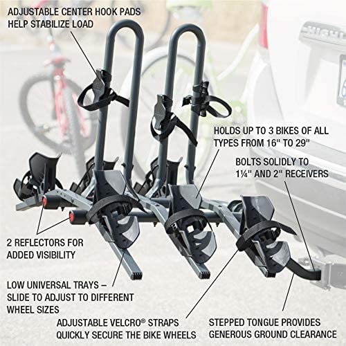 Fits 11/4″ And 2″ Receivers with hoops stabilize bikes