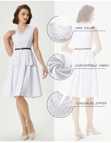 Belle Poque Womens A Line Dress Lace Patchwork Sleeveless Flared Vintage Dress