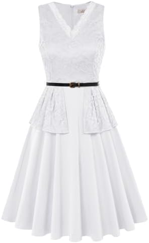 Belle Poque Sleeveless A Line Dress V Neck Cocktail Swing Dress with Belt