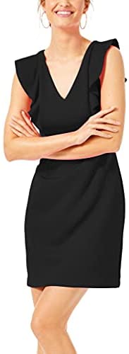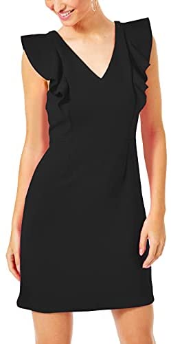 BELONGSCI Ladies’s Costume Elegant V-Neck Ruffle Cap Sleeve Informal Workplace Summer season Slim Costume