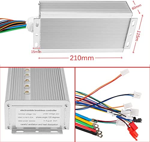 BLDC Controller: Voltage 48-72V, Proctect 42 volt, Power 3000 watt, 24 mosfet, Current 50 amp, Phase Degree: 120°, Smart Controller Can Work With Hall Sensor And Without hall, Brushless Motor Speed Controller, E-Brake, 3-Speed (Low Mid High Speed), Reverse Functions, Indicator Light And Power Lock Functions.