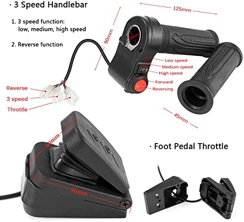 Handlebar Twist Throttle: Universal Accelerator Handlebar Throttle Twist Grips, 12V-72V Universal, With 3 Speed (High,Mid and Low Speed) And Reverse Functions, Wire Length About 150cm ( 59 inch) , High Quality Rubber And ABS Material.