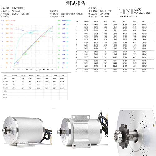 BLDC Scooter Motor: Brushless High Speed Mid Drive Motor, Voltage 72V DC, Rated Power 3000W peak, Current 45A, Rated Speed 4900rpm/min, (Max 5800RPM), T8F 11Teeth Sprocket, Load Weight: About 100-200kg. NOTE: motor speed according to your load-weight and others.