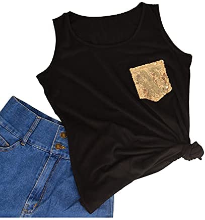 Sleeveless Spherical Neck Summer ShirtsBreathable and Smooth Sleeveless Tank TopCute Sequins Entrance PocketBasic and Trendy Tunic Tank TopPerfect for spring/summer season/fall