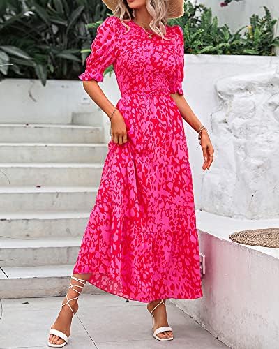 BTFBM Women’s Boho Dress Crew Neck A Line Floral Casual Flowy Maxi Dress Tiered