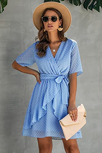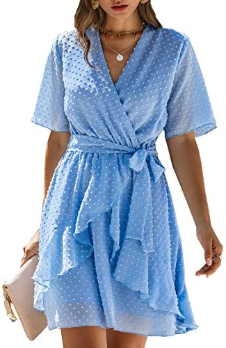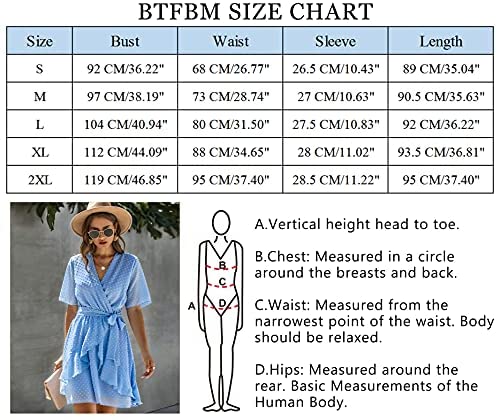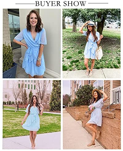 BTFBM Girls Vogue Fake Wrap Swiss Dot V-Neck Quick Sleeve Excessive Waist A-Line Ruffle Hem Plain Belt Quick Costume