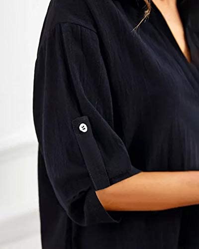 Match: The free roll-up sleeve button shirt costume with pockets makes you freedom ang cozy. It is excellent with leggings, denims, tights,skinny pants,heeled boots and so on.