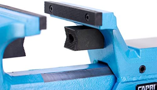 Use this bench vise for all kinds of woodwork, metalwork, sawing, drilling, and gluing things together! Not your average bench vise, this beast is made of 90,000 PSI tensile strength (54,000 psi yield strength) drop forged steel, a large anvil, and corrosion resistant black oxide handle. The guiderails are adjustable to help increase precision and smoothness on the job. It exerts 8,800 pounds of extremely sturdy clamping force and comes with replaceable machinist and pipe jaws. Combine that with a 360 degree swivel base, and you can’t go wrong, especially with the added security of the Capri Tools lifetime warranty. This is a great tool to have on your workbench.