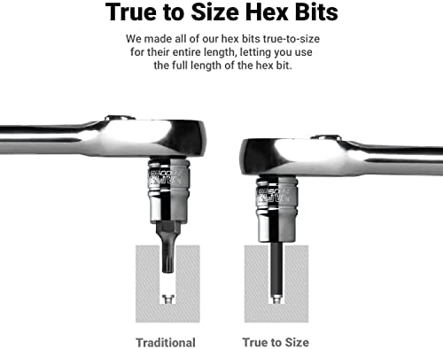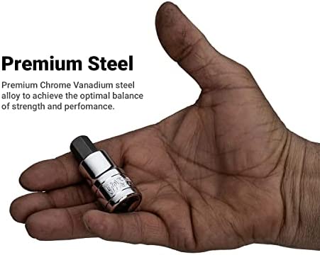 Made for the most demanding professionals, each of our bit sockets is made from custom forged premium steel that underwent proprietary heat treatment and precisely machined to perform in toughest situations. Premium S2 steel forged bits are exceptionally strong and durable. These S2 steel bits withstand high torque and do not twist, protecting both the bit and the fastener. Chamfered end to ensure a smooth fit onto fasteners. Premium Chrome Vanadium steel sockets plated with our SmartKrome protective plating are durable and corrosion resistant. Single 1/4 in. drive, 5 mm hex bit socket. The Capri Tools bit sockets are made for the most demanding professionals. Each of our bit sockets is made from custom forged steel that underwent a proprietary heat treatment process and precisely machined to perform in toughest situations. Premium S2 steel forged bits are exceptionally strong and durable. They withstand high torque and do not twist, protecting both the bit and the fastener. All bits feature chamfered end to ensure a smooth fit onto fasteners. The sockets are constructed with premium Chrome Vanadium steel and plated with our own SmartKrome protective plating. They are durable and resist corrosion. Meets and exceeds ASME B107.110 standards. Single 1/4 in. drive, 5 mm hex bit socket.