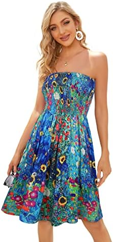 Strapless Dresses For Women Elastic Tube Top Sun Dress for Beach