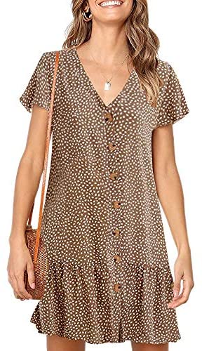 Chuanqi Womens Polka Dot V Neck Button Down Ruffles Informal Unfastened Swing Quick Mini T-Shirt Gown