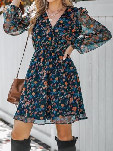 1 V Neck 2 Long Sleeve 3 Elastic Waist 4 Blue 5 Black
