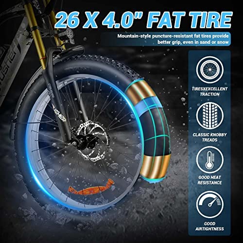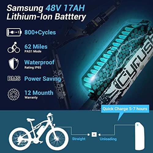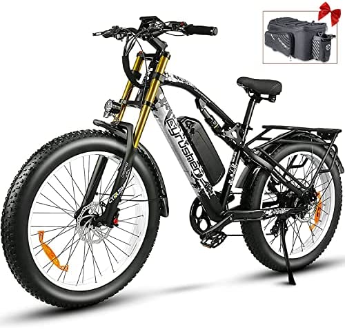 Cyrusher XF900 Electric Bike for Adults, 750w 48V/17AH Battery Ebike Shimano 7 Speeds Fat Tire Foldable Electric Bicycle Full Suspension with Mudguard and Rack