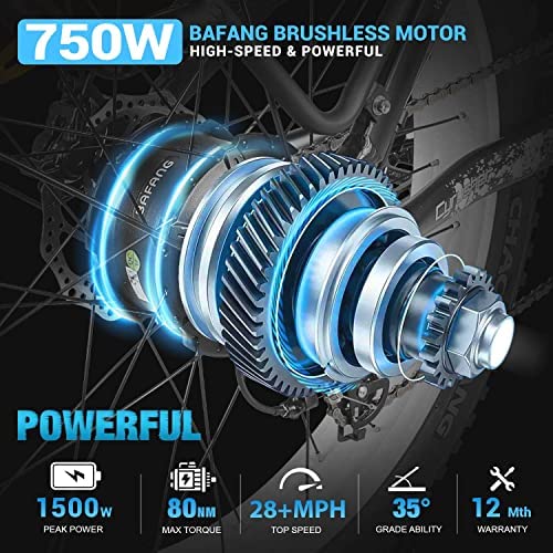 【Powerful Motor】- This electric bike equied with a 750-Watt Ba fang rear hub motor that has a peak wattage output of 1,500-Watts! The motor boasts an incredible 85 newton meters of torque and is powered by a 48v, 17ah, lithium-ion removable battery that lasts 35-62 miles on a full charge. In case you need to charge a GPS or cell phone, we added an easily-accessible USB charging port right on the battery.