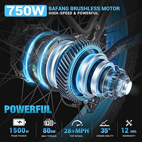 【Powerful Motor】- This electric bike equied with a 750-Watt Ba fang rear hub motor that has a peak wattage output of 1,500-Watts! The motor boasts an incredible 85 newton meters of torque and is powered by a 48v, 17ah, lithium-ion removable battery that lasts 35-62 miles on a full charge. In case you need to charge a GPS or cell phone, we added an easily-accessible USB charging port right on the battery.