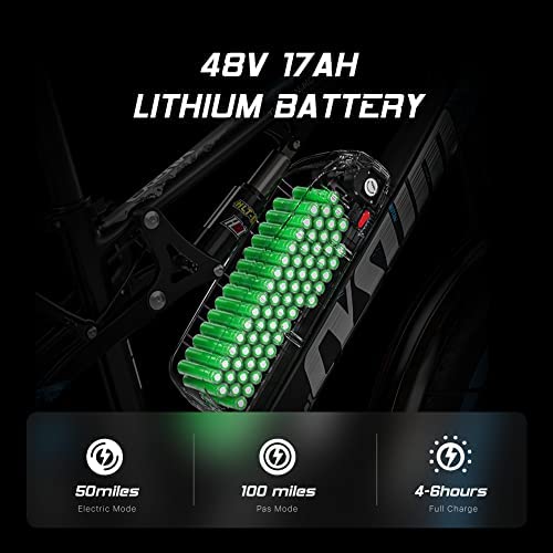 Great battery: M900 mountain bike with 48 x 17 Ah battery. The battery life is about 50 kilometers (pure electric mode) or about 80 kilometers (pedal assist mode). The battery has been charged more than 1500 times and takes 5-7 hours to fully charge
