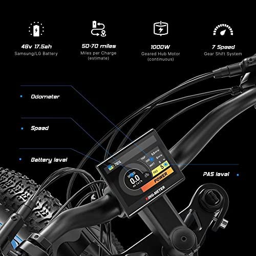 Fat Tire Bike: 26*4 inch thick tires with extra thick abrasion resistant rubber to withstand most impacts and provide car-like comfort in all road conditions. Equipped with a 1000W rear motor, it brings unlimited power to your riding, and the maximum speed can reach 45km/h. You can also set the speed limit (25km/h) through the display screen