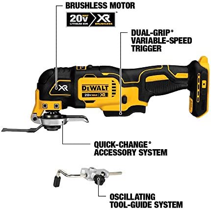 DCS355 has a Quick-Change accessory system that allows blades and attachments to be changed quickly without wrenches