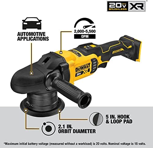 DEWALT polisher has speed range of 2000-5500 OPM for all types of applications
