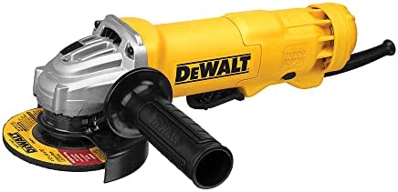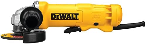 The DEWALT DWE402W 4-1/2″ Small Angle Grinder with Wheel features an 11 Amp AC/DC 11,000 RPM motor which is designed for faster material removal and higher overload protection. The Dust Ejection System provides durability by ejecting damaging dust and debris particles that enter the tool through the air intake vents. It has a low profile gear case allows access into tight spaces, along with a Quick-Change wheel release that allows tool free wheel removal without the need for a wrench. A One-Touch Guard allows for 360 degree rotation of the guard with a single action, and a paddle switch with safety lock-off prevents accidental start up. The matching wheel flanges allow the use of common accessories. Includes: (1) Grinder, One-Touch Guard, 2-Position Side Handle, Wrench, 4-1/2″ Abrasive Wheel.