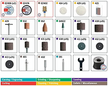 Ideal for cutting, sanding, polishing, grinding, and carving the Dremel 160-piece Multipurpose Accessory set is the complete start-up kit you need to complete a wide range of projects