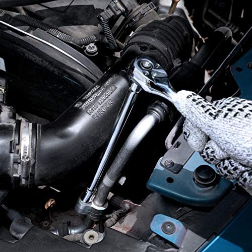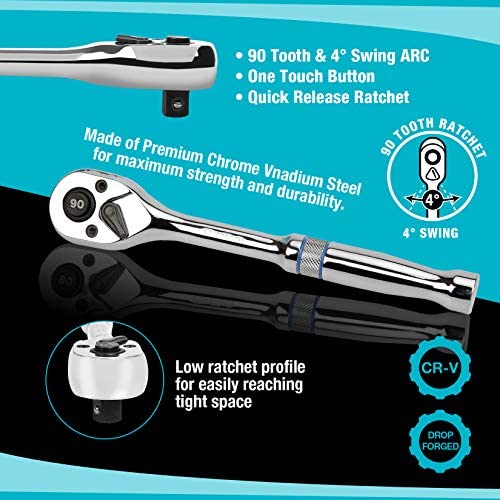 【90-Tooth Ratchet】One Button Quick Release 90-Tooth Ratchet mechanism design provides a 4-degree of arc swing, perfect for tight spaces,secures socket into place and release quickly