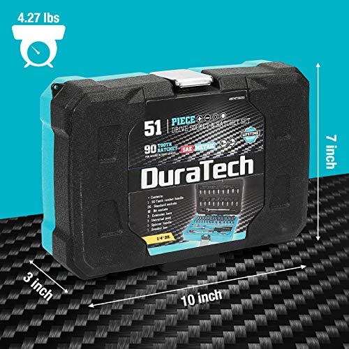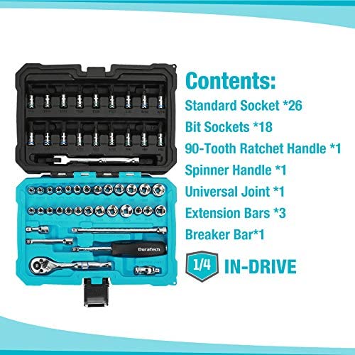 DURATECH 1/4″ Socket Set, 51 Piece Tool Set Including Standard(SAE) and Metric Sockets,Bit Sockets,Ratchet and Universal Joint